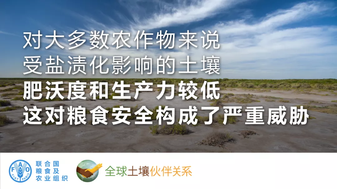 聯合國糧農組織舉行“世界土壤日”紀念活動。©糧農組織-農作方法不可持續,過度開發自然資源,人口不斷增長,這一切讓土壤承受的壓力越來越大,并造成土壤在全球范圍內以驚人的速度退化。-糧農組織10月發布的全球鹽堿土壤分布圖顯示,全球超過8.33億公頃的土壤已經受到鹽堿化的影響。 -根據測算,超過10%的農田出現鹽堿化,對全球糧食安全構成重大威脅。管理鹽堿化土壤需要綜合施策,采用可持續的土壤、灌溉和排水管理方式,選擇耐鹽作物和植物,包括能夠在鹽堿環境中良好生長的鹽生植物。